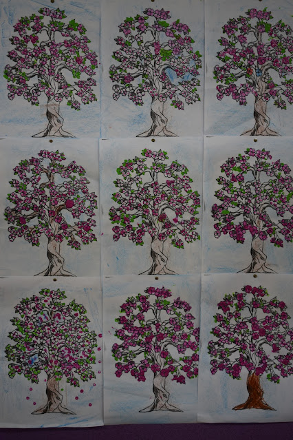 También hicimos un cerezo en flor utilizando bastoncillos.